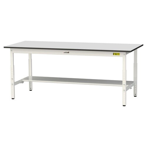 軽量作業台/耐荷重150kg 高さ調整式 半面棚付 RoHS2対応塩ビシート天板 W1800D750H600−900mm SURA−1875T−GYW 天板ライトグレー脚ホワイト 1台【メーカー直送