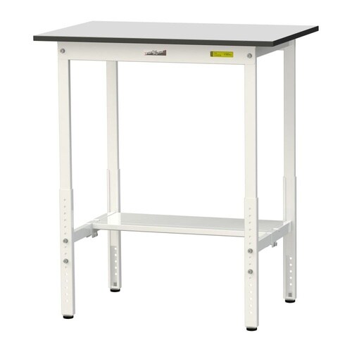 軽量作業台/耐荷重150kg 高さ調整式 半面棚付 RoHS2対応塩ビシート天板 W900D600H900−1200mm SURAH−960T−GYW 天板ライトグレー脚ホワイト 1台【メーカー直送
