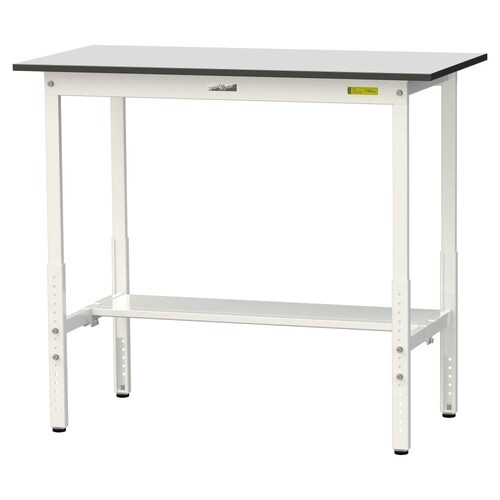 軽量作業台/耐荷重150kg 高さ調整 半面棚付 RoHS2対応塩ビシート天板 W1200D600H900−1200mm SURAH−1260T−GYW 天板ライトグレー脚ホワイト 1台【メーカー直送