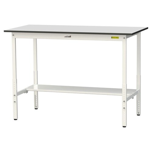 軽量作業台/耐荷重150kg 高さ調整 半面棚付 RoHS2対応塩ビシート天板 W1500D750H900−1200mm SURAH−1575T−GYW 天板ライトグレー脚ホワイト 1台【メーカー直送
