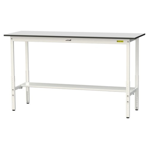 軽量作業台/耐荷重150kg 高さ調整 半面棚付 RoHS2対応塩ビシート天板 W1800D600H900−1200mm SURAH−1860T−GYW 天板ライトグレー脚ホワイト 1台【メーカー直送