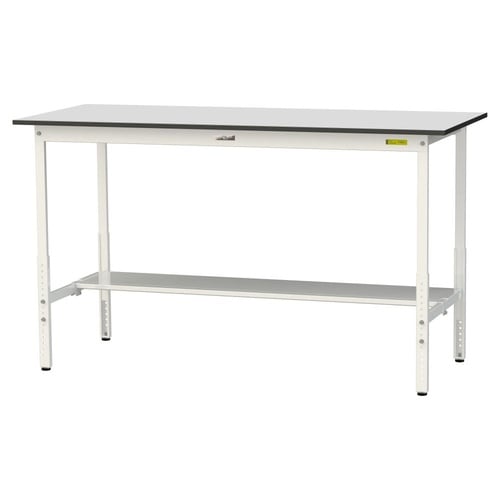 軽量作業台/耐荷重150kg 高さ調整 半面棚付 RoHS2対応塩ビシート天板 W1800D750H900−1200mm SURAH−1875T−GYW 天板ライトグレー脚ホワイト 1台【メーカー直送