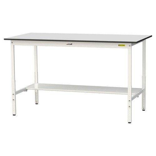 軽量作業台/耐荷重150kg 高さ調整 半面棚付 RoHS2対応塩ビシート天板 W1800D900H900−1200mm SURAH−1890T−GYW 天板ライトグレー脚ホワイト 1台【メーカー直送