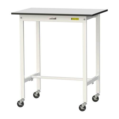 独自構造で簡単組立!キャスター付きで移動も楽々!耐久性・耐薬品性・弾力性があり積載物を傷つけにくいRoHS2対応塩ビシート貼り天板の軽量作業台。精密機器の検品・組立等に。少し高めの立ち作業台に。 |