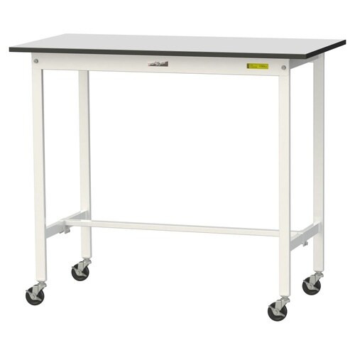 独自構造で簡単組立!キャスター付きで移動も楽々!耐久性・耐薬品性・弾力性があり積載物を傷つけにくいRoHS2対応塩ビシート貼り天板の軽量作業台。精密機器の検品・組立等に。少し高めの立ち作業台に。 |
