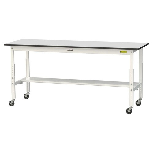 軽量作業台 高さ調整移動式 半面棚付 RoHS2対応塩ビシート天板 ワークテーブル150 W1800D600H688−988mm SURAC−1860T−GYW Lグレー×ホワイト 1台【メーカー直送