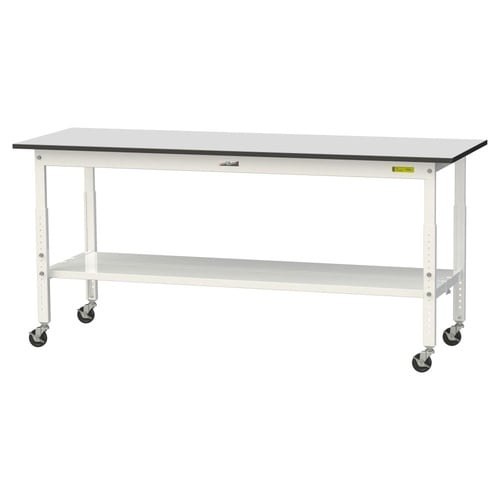 軽量作業台 高さ調整移動式 半面棚付 RoHS2対応塩ビシート天板 ワークテーブル150 W1800D600H688−988mm SURAC−1860TTGYW Lグレー×ホワイト 1台【メーカー直送