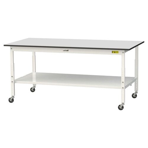 軽量作業台 高さ調整移動式 半面棚付 RoHS2対応塩ビシート天板 ワークテーブル150 W1800D900H688−988mm SURAC−1890TTGYW Lグレー×ホワイト 1台【メーカー直送