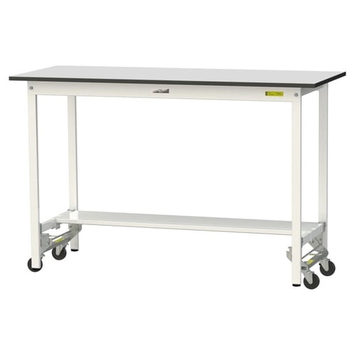 軽量作業台 ワンタッチ移動式 半面棚付 RoHS2対応塩ビシート天板 ワークテーブル150 W1500D600H950mm SURUH−1560TGYW 天板ライトグレー脚ホワイト 1台【メーカー直送