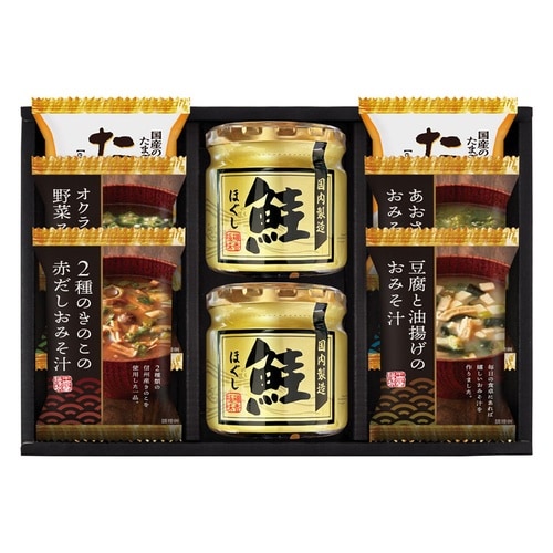 「凍結&乾燥」の技術で、作りたての美味しさをギュッと閉じ込めたフリーズドライ食品。栄養価も閉じ込めるとともに素材本来の旨味までお楽しみいただけます。 鮭ほぐしやかつおパックとの詰合せをご堪能ください |