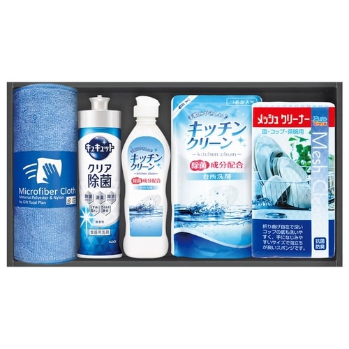 花王キュキュット食器用洗剤と共に、生活に役立つアイテム詰め合わせ。贈り物に最適なセット。 |