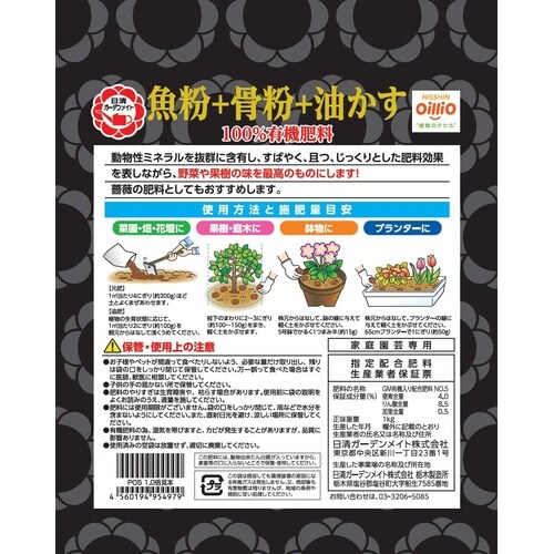 魚粉・骨粉・油かすを理想の配合でブレンドした100%有機肥料です。 |