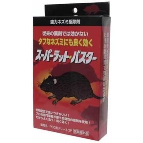 従来の薬剤では効かなかった抵抗性のあるネズミ(スーパーラット)も駆除する、ねずみとり殺虫剤です。 |