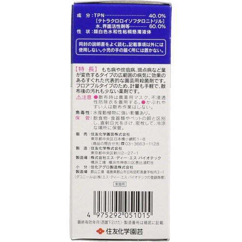様々な植物で、かび類によって起こり、もち病や炭そ病、斑点病など変色するタイプの広範囲の病気に効果がある総合殺菌剤 |