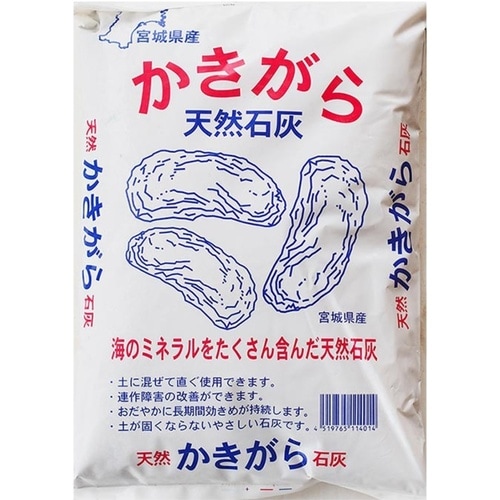 宮城産かきがらを粉砕し3年間熟成した有機石灰。畑や花壇の土壌の酸度調整、ミネラル補給に! |
