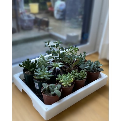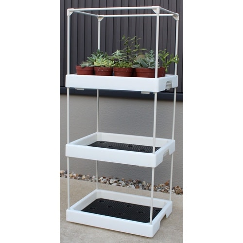 ディスプレイ棚と栽培トレーがセットになった多肉植物のマンション |