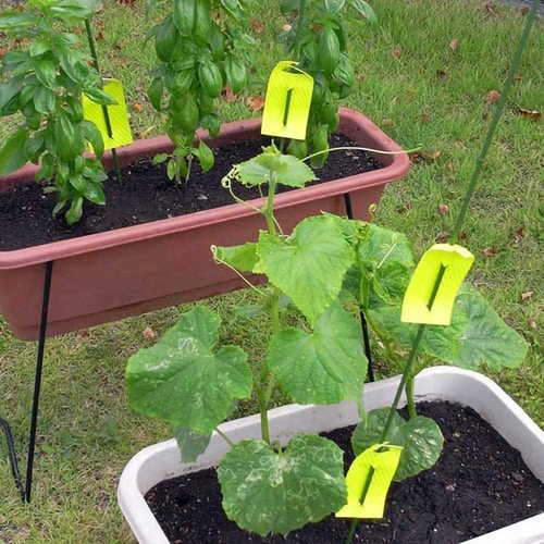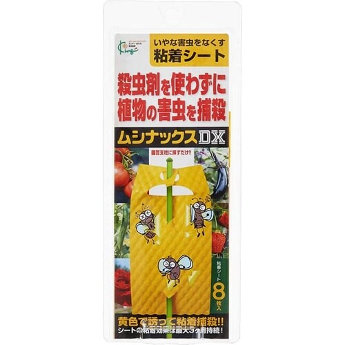 植物に飛んでくる害虫を黄色で誘って粘着捕獲します。 |