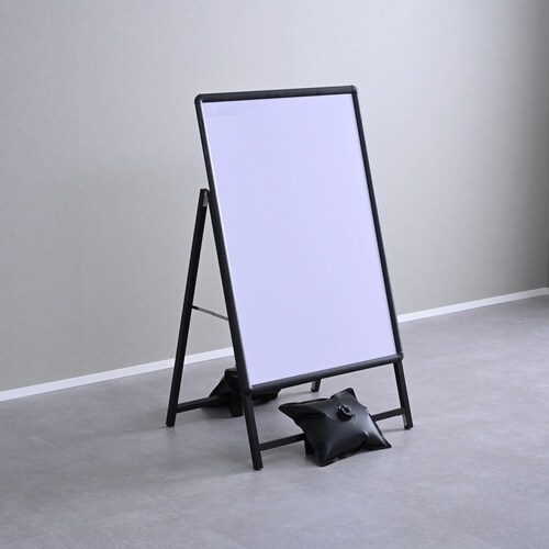 ポスター掲示に最適なA1サイズの看板。前面からフレーム4辺を開閉できるフロントオープンタイプだから、後ろに回らずにポスターやポップの差し替え可能。嬉しい転倒防止用ウェイトが2個付き。 |