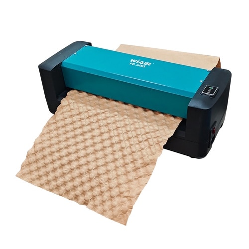 プチプチに代わる次世代紙緩衝紙製造機。卓上式。速度:6m/分。加工幅:300mm。ミシン線付き、簡単カット。小物、精密機器部品、食品、アクセサリーなどの包装に最適。10kgまで物品対応。100V対応。 |