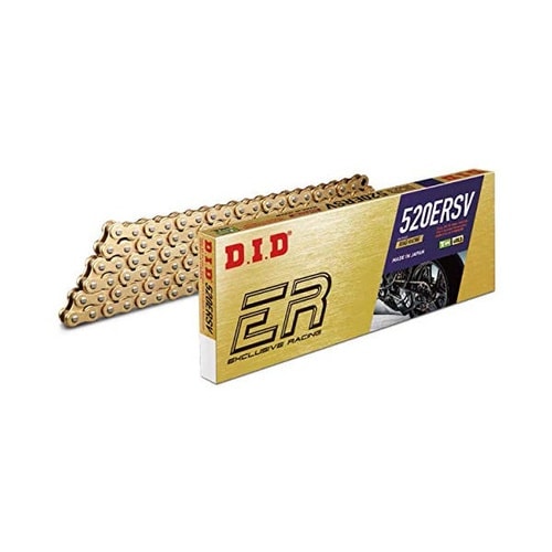オフロード競技向けに開発された軽量高強度シールチェーン520ERSVの130リンク仕様で、カシメジョイントを採用したモデル。 |