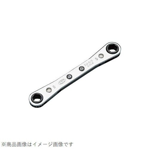 薄型ヘッドで狭所作業に適した板ラチェットめがねレンチで、送り角5°のラチェット機構により効率よく締緩作業が行えるパック品モデル。 |