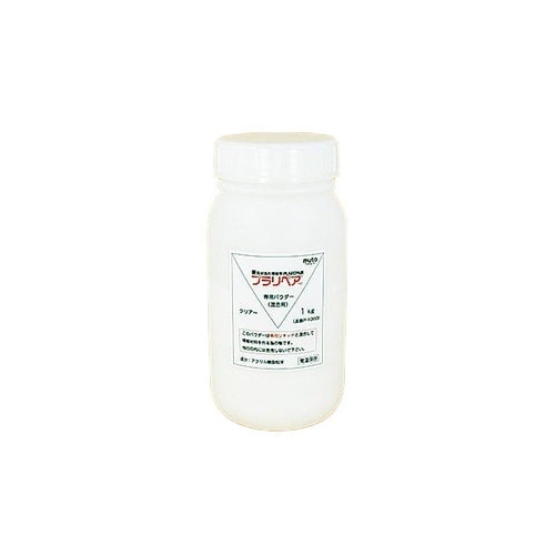 Muto製のプラリペア粉末。透明タイプでプラスチック補修に使用し、容量1000gで強力な接着力を発揮。 |