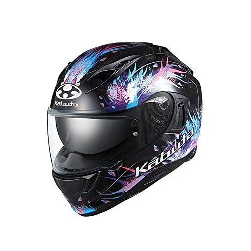 フルフェイスヘルメットKAMUI 3「LEIA」グラフィックモデル。インナーサンシェード標準装備で昼夜問わず快適な視界を確保。ブラックカラーは精悍でシックな印象を与えます。 |