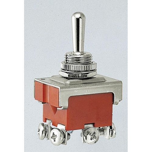 ビス固定式のトグルスイッチ。電装品のON/OFF操作に適する。