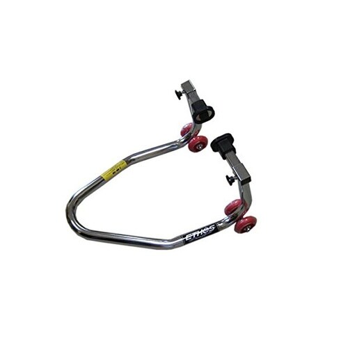 ミニバイク用Tアーム受け仕様のダブルキャスタースタンド。コンパクトながら安定した保持力を発揮します。 |