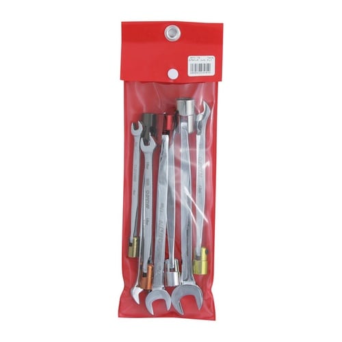 7サイズ対応のフレックスコンビレンチセットで、首振り機構により狭所作業も容易。 |