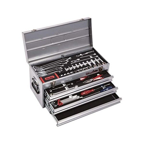 差込角3/8DRと1/4DR対応の83点組ツールキットで、シルバーカラー仕様の多用途セット。 |