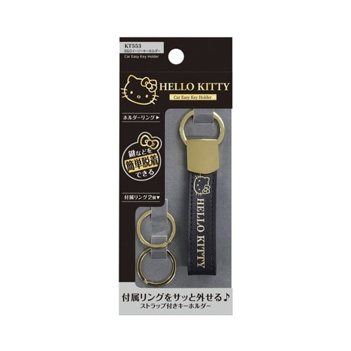 ハローキティのブラック&ゴールドシリーズのキーホルダー。スマートキーを簡単に取り付け可能。 |