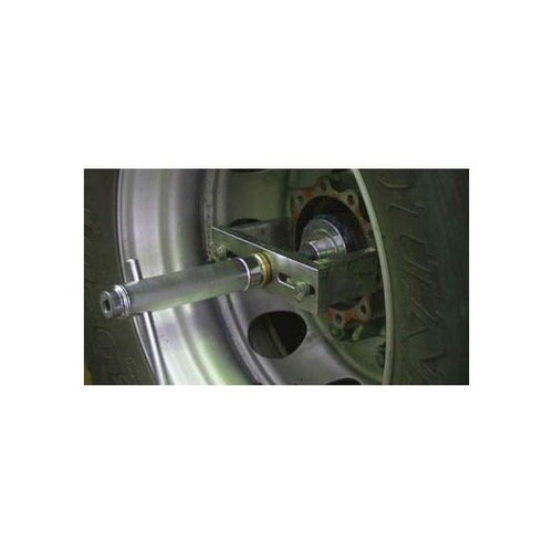 大型車のホイールハブ組付け作業を効率化する専用インサーターで、ガイドピン付き圧入構造を採用。 |