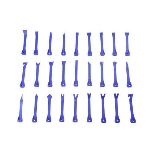 自動車内装のトリムやスクレーパー作業に使用する専用ツールセットで、ナイロン樹脂製の軽量設計。 |