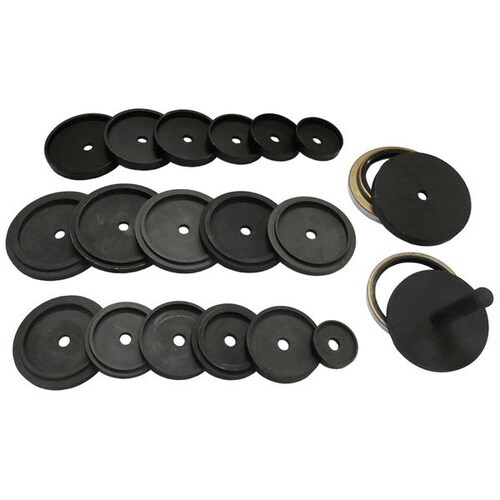 2tリアー大型トラックまで対応する汎用ハブシールインストーラーセット。凸型ハブシールを専用プレートとシャフトで正確に圧入可能。 |