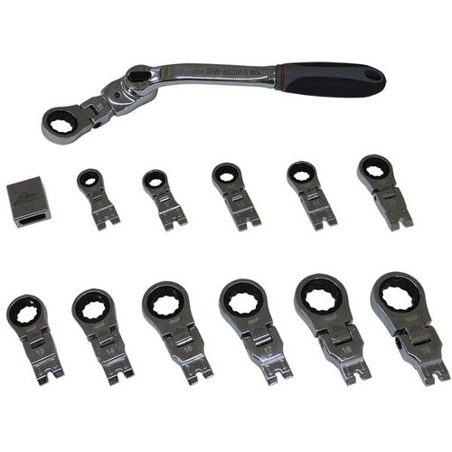 フレキシブル構造のスネークラチェットレンチセット。狭所や複雑な角度での作業に対応。 |