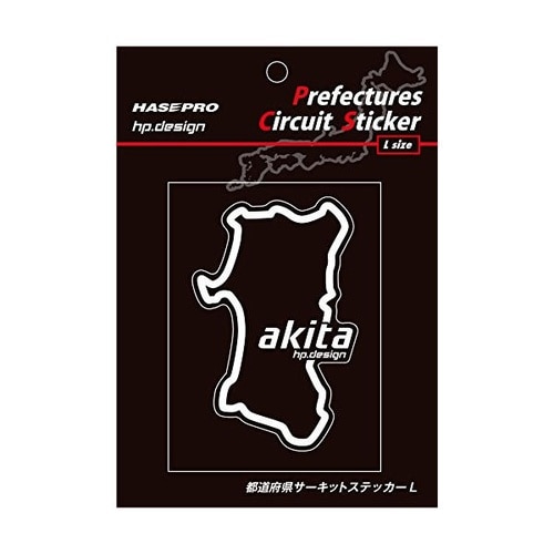 秋田県の形をモチーフにしたサーキット風デザインのステッカー。 |