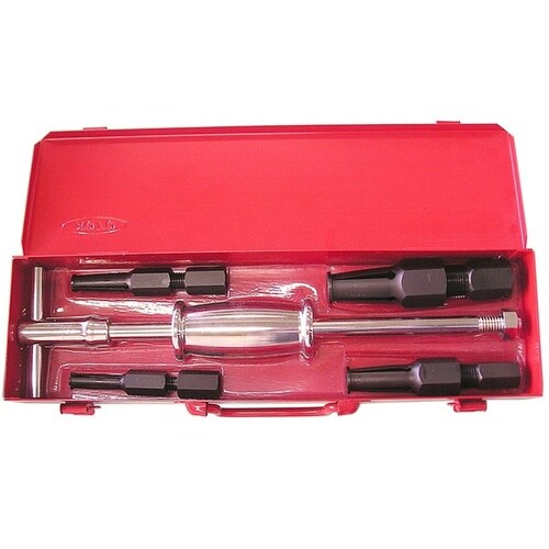 フランジ奥やブロック内のベアリングを内径10ー32mmで抜き取れる工具で、先端交換とスライドシャフトにより狭所でも確実に作業できます。 |