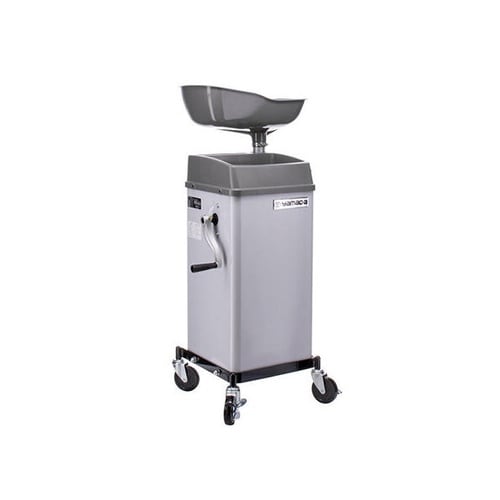 手動ロータリーポンプを内蔵し、タンク内廃油を排出可能なオイルドレン。グレイッシュホワイト塗装仕様で大型角型受皿を備える。 |