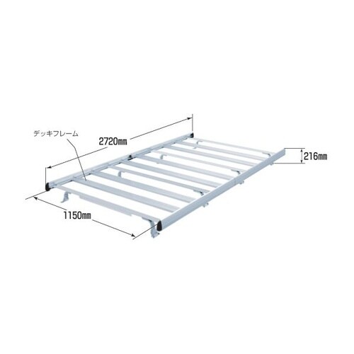 標準・ハイルーフ車対応の専用キャリアです。スチール脚部と幅広デッキを採用し、車両側ナットで固定します。ステンレスボルトで耐久性に優れています。 |