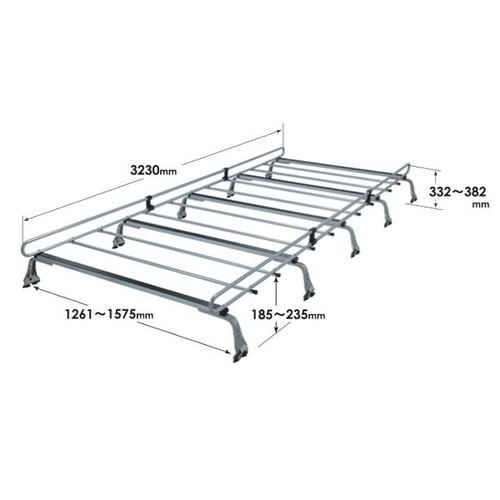 ZAM採用の高耐食キャリアで滑り止めラバーとロープフック付きです。耐食性が高く荷受部をフラットに調整できます。 |