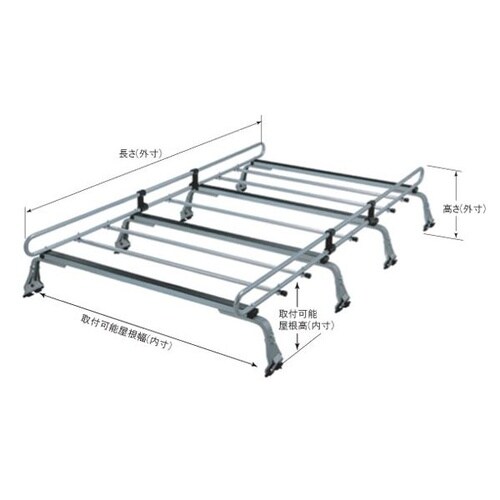 ZAM採用の高耐食キャリアで滑り止めラバーとロープフック付きです。高さ調整は8段階で耐食性と耐摩耗性に優れます。 |
