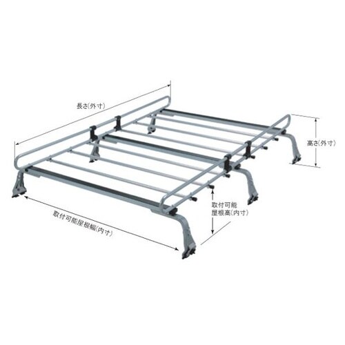 ZAM採用の高耐食キャリアで滑り止めラバーとロープフック付きです。高さ調整は8段階で荷受部をフラットにできます。 |