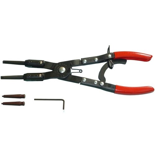 FF車ナックルベアリング用スナップリングプライヤーで、爪交換によりトヨタ系・日産系どちらにも対応し、確実にリングを脱着できる専用設計です。 |
