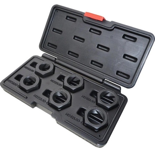 六角ダイス。専用ホルダーを使用せずにソケットやメガネレンチ等で作業が行えます。使用例。リヤホイールボルトに、ISO規格のボルトにも、フロントホイールボルトにも。 |
