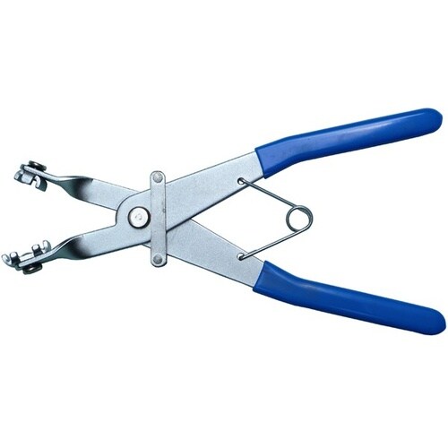 硬いホースバンドを外す専用プライヤーで、360度回転する爪により向きを選ばず掴め、ストッパーで開きを保持できるため狭所でも確実に作業できます。 |