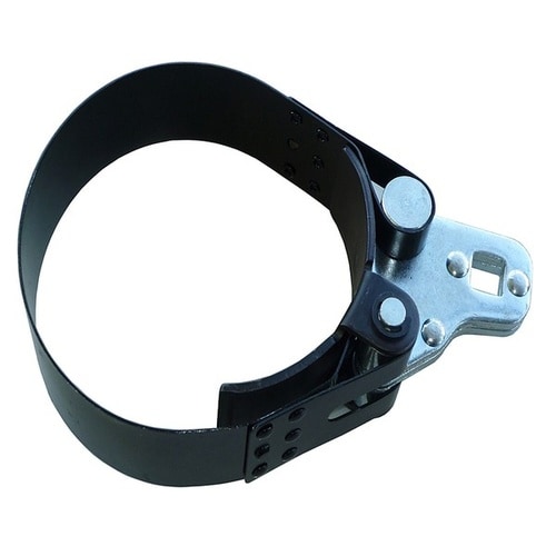 バンド式フィルターレンチで締め緩め両対応。支点が広くフィルターが潰れにくく、12.7SQ工具で扱える実用的な整備工具です。 |