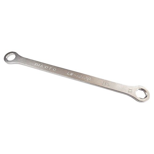 LWメガネレンチのストレート型で、13mmの6角・12角を備え、狭いスペースでも確実にアクセスでき、通常のレンチが届かない箇所の整備に最適な薄型設計です。 |