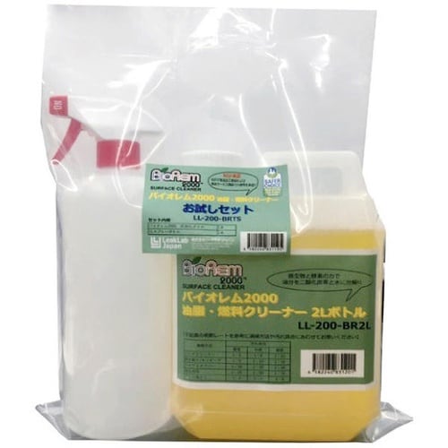 2Lボトルと1Lスプレーボトルを組み合わせたお試しセット。微生物と酵素で油脂・燃料を分解し、ガソリンやジェット燃料を短時間で非可燃化できる中性クリーナー。 |