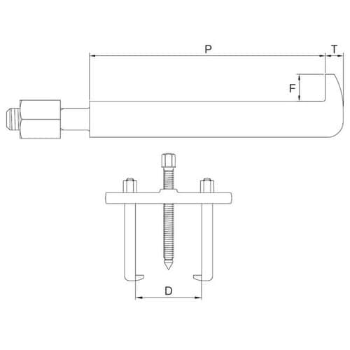 KP−110用角爪ナット付部品で、小型ベアリング等のレースプーラー作業に使用する補助部品。 |
